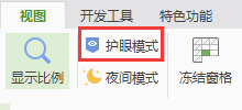 在“视图”选项卡上,选择“护眼模式”。表格的编辑区域会显示为护眼的绿色。