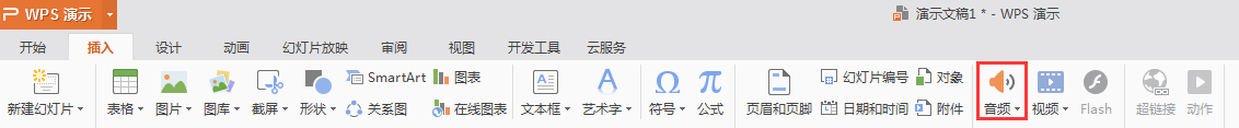 请问是需要插入音频文件吗?如果是的话,点击功能区插入-音频。