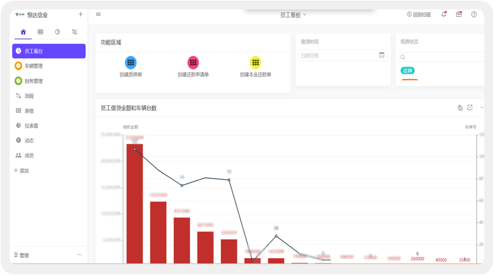 贷后管理系统包含借贷方按期回款的各项信息,工作人员在仪表盘中,可以及时查询逾期未还人员的信息,并致电客户进行沟通。