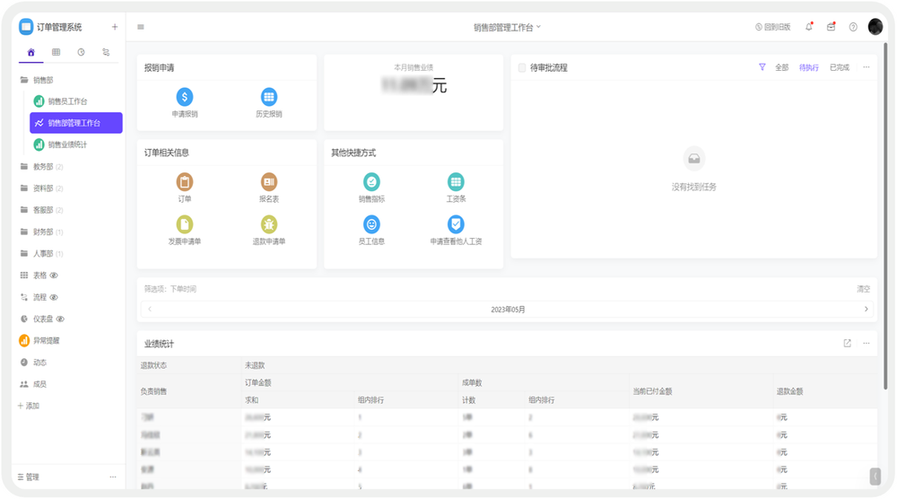 多部门协同工作,处理并更新订单信息,销售人员通过工作台随时查看订单的后续服务状态,确保服务的连续性和及时性。