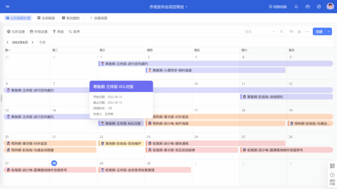 - 「日历视图」,随时调整日程安排,节点清晰、任务进度全掌握!