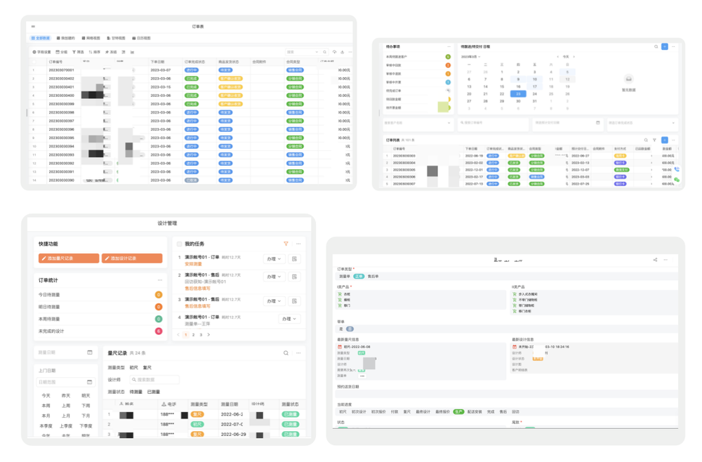 第二,获户信息系统内安全保存,真正实现客户零流失。 在客户订单管理页面中,可以清晰地看到客户信息,最新量尺信息、最新设计信息以及当前的跟进进度、状态,也能够及时查询账款问题,不会因为人员的流动造成的工作交接不清楚而丢失客户信息,客户流失率直降为0.3%。