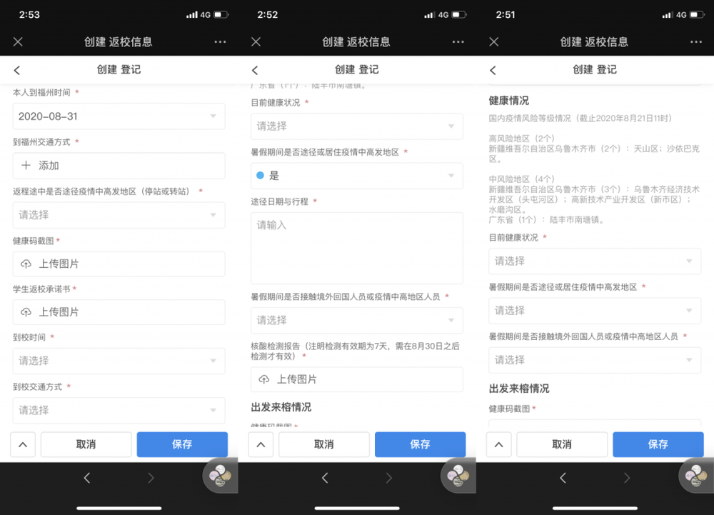 据悉,伙伴云学生返校健康上报应用一经上线,便得到了校方的高度认同与密切配合。截止8月31日,伙伴云学生健康信息上报应用已收集到了来自福墨理工学院29个省市,近1000名学生的健康档案。