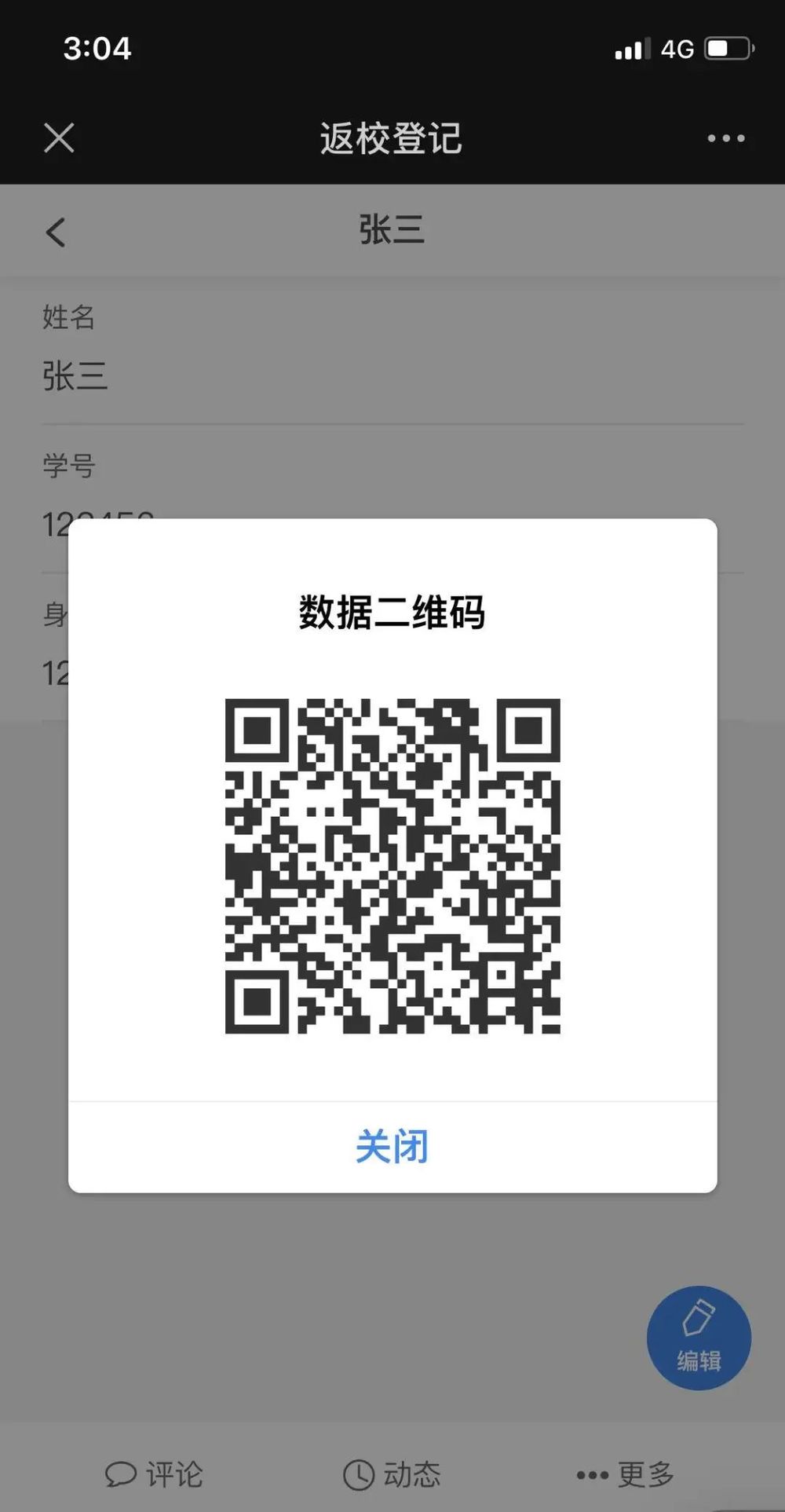 这样,学生进入学校前只需展示审批通过的二维码截图,门卫确认无误后即可进入学校,无需二次登陆平台,来获取信息填报审核情况。方便自己的同时,也大大提升了门卫等工作人员的工作效率。