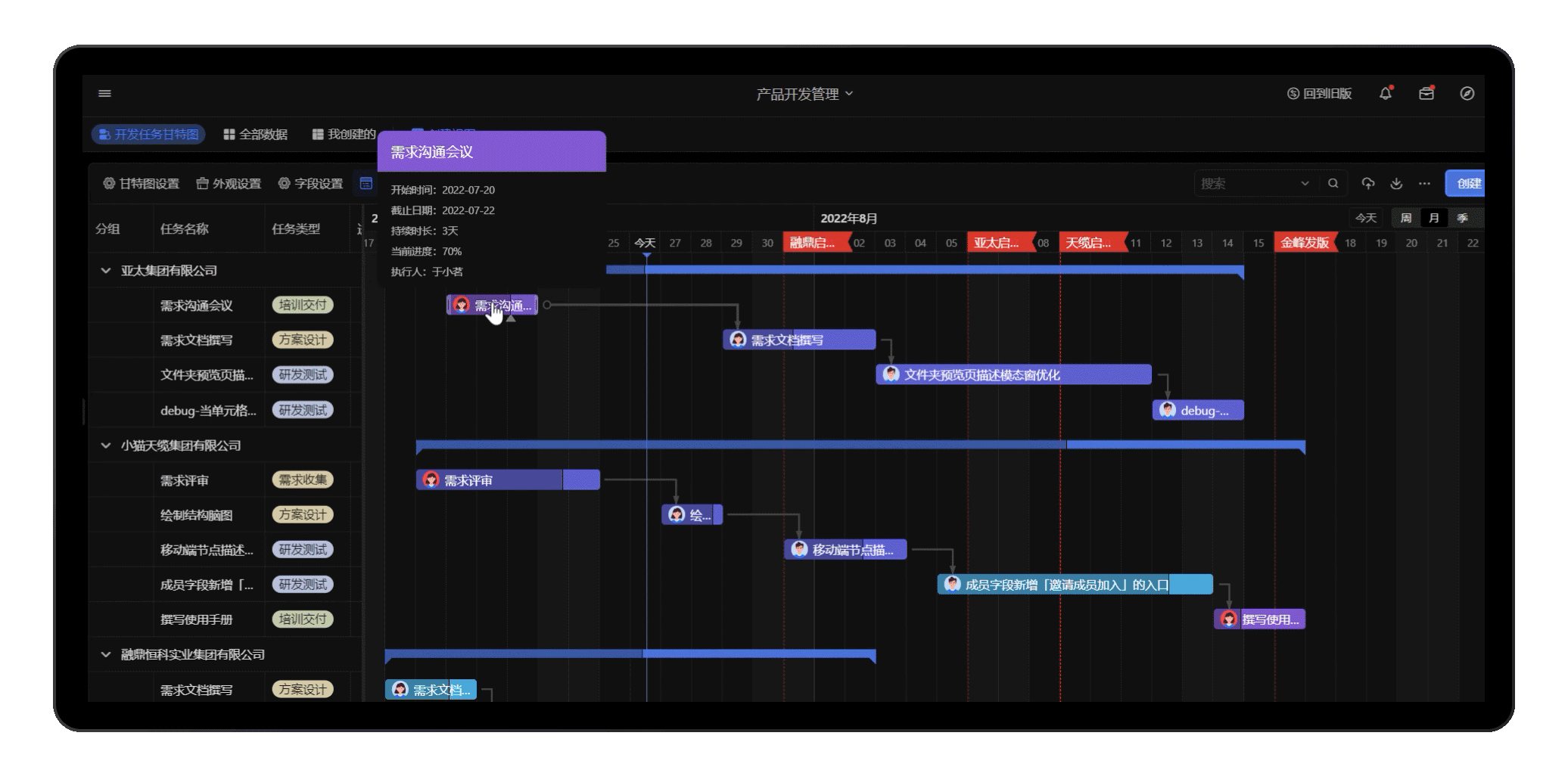 下面,我们就以甘特图工具为例,带大家看下在多项目并行的情况下,如何借用高效工具进行项目进度的管理。