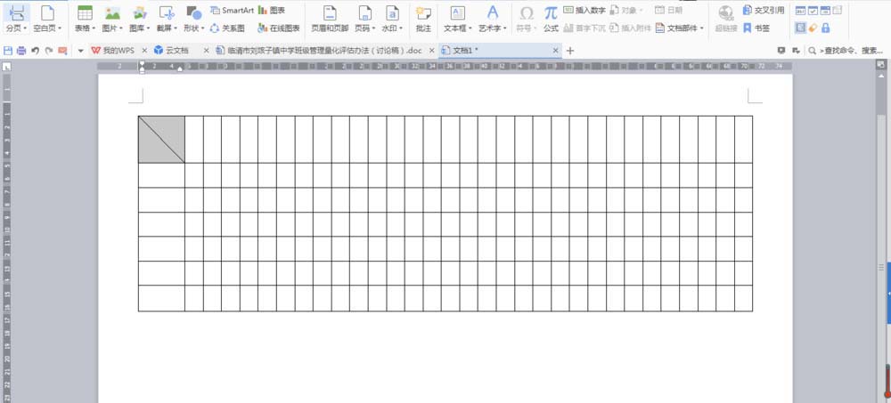4、选择左上角第一个单元格,接着选择绘制表格,为其绘制一条斜线。