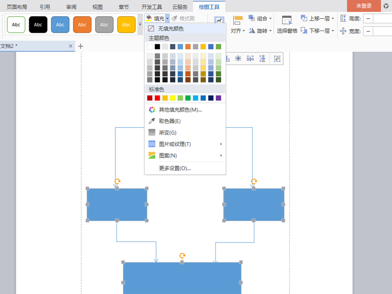 4、执行ctrl键依次选择不同的形状,执行绘图工具-填充命令,选择无颜色填充。