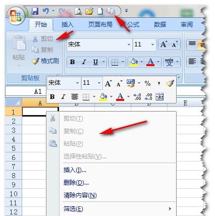 然而,在Excel 2007及以后的版本中,上述代码只能禁用快捷菜单和快捷方式的剪切、复制、粘贴等功能,在功能区中剪切、复制、粘贴仍然可以使用,快速访问工具栏中的也可以使用。如下图1所示。