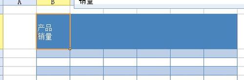 5、将光标放到产品和销量中间,然后按下alt+回车键,换行