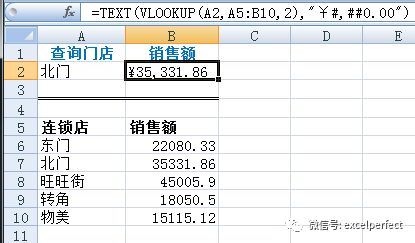 =TEXT(VLOOKUP(A2,A5:B10,2),”¥#,##0.00″)