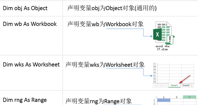变量除了可以表示数值、字符串等外,还可以表示一个工作簿、一张工作表、一个单元格,这就是对象变量(Object类型的变量)。