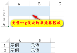 现在,我们就可以使用变量rng来代表工作表Sheet1中的单元格区域A1:B2。