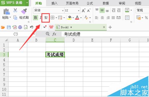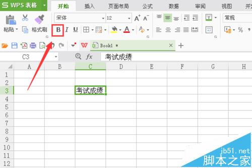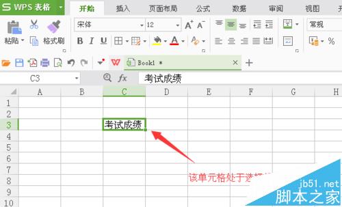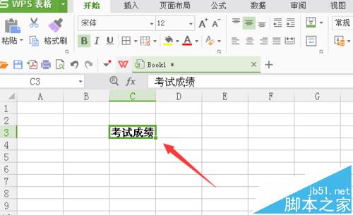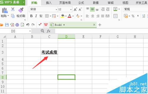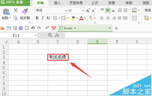 2、选择一个单元格,并在该单元格里输入考试成绩四个字,如图所示: