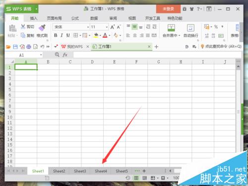 7、回到Wps表格中,再次新建工作簿时可以看到编辑区域下方的工作表已经有好几个了。如图所示;