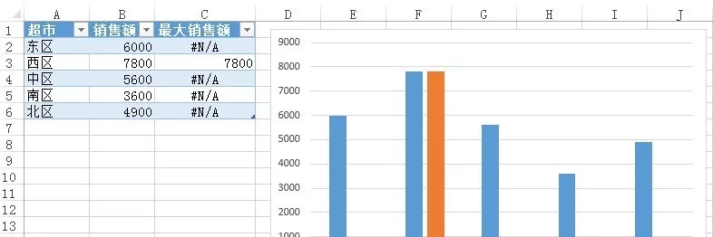 =IF([销售额]=MAX([销售额]),[销售额],NA())