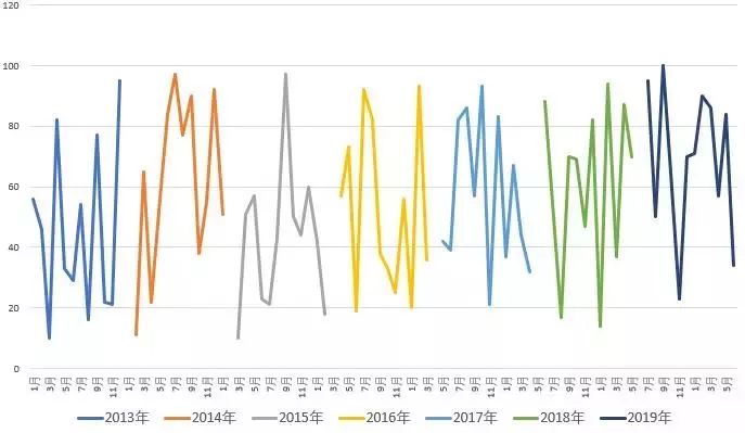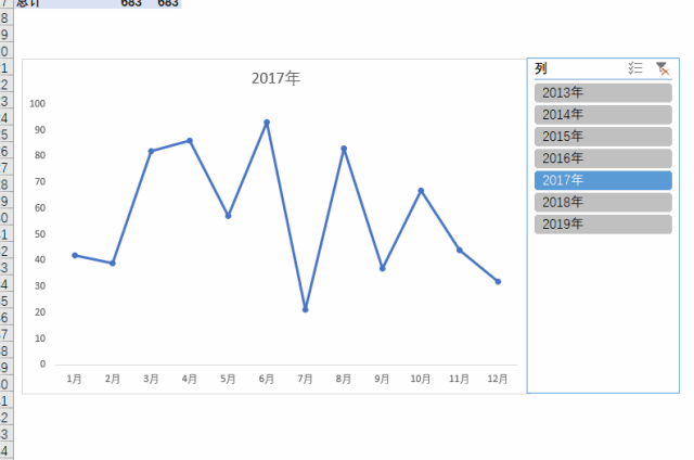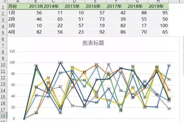 N年的数据直接插入折线图,看上去眼花缭乱。