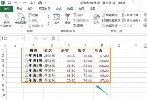 1、如下图,这是一张学生成绩表,其中我们可以看出一共有三个班级,然后还有语文、数学和英语三门功课…