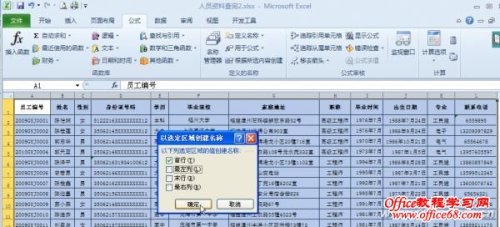 切换到“员工记录”工作表,选择所有数据列(A:L),然后在“公式”选项卡的“定义的名称”组中单击“根据选择创建”。在“使用选定区域创建名称”窗口中,仅选择“第一行”选项(图2),然后单击“确定”根据列标题定义每列的名称。切换到“查询”工作表,选择B4单元格并输入公式=偏移量(记录!$ A1,MATCH($ B2,INDIRECTIVE($ A2),0),0 .在单元格B4:B10和D4:D8中输入此公式,但将公式中的最后一个0更改为1、2、3 … 11,以便分别显示相应列的内容。