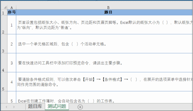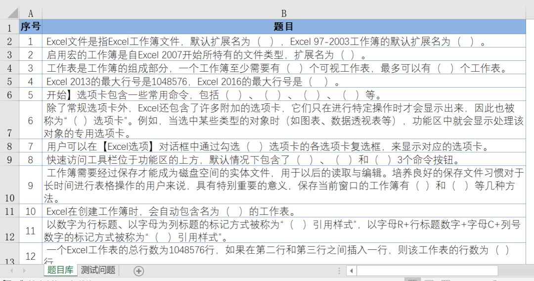 先准备好题目库的内容,一会儿咱们就是在这里面提取题目了:
