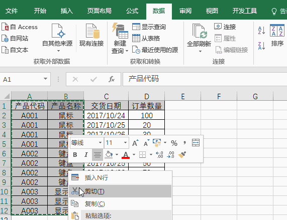 1、利用“删除重复项”,提取唯一产品代码与名称,过程如下: