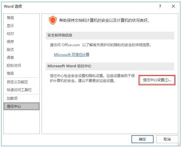 允许网络上的受信任位置,这项选择微软是不推荐的,除非有特殊用途。