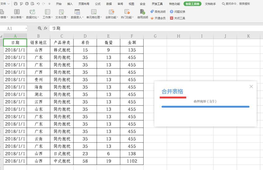 最后我们看到所有表格的数据全部汇总到一个工作表: