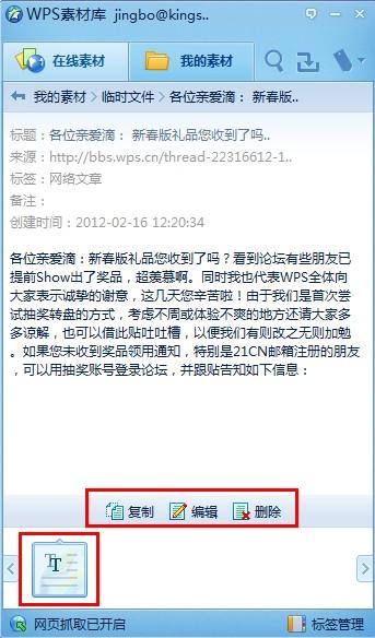 WPS如何通过一键在线材料将内容保存在网页上