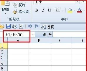 这个时候在左边如图所示的位置输入E1:E500.输入完成后按Enter。