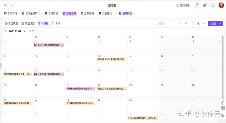 现在系统会通过日历视图的形式,提前提醒经办人员合同到期时间,不用再担心遗忘合同收、付款。
