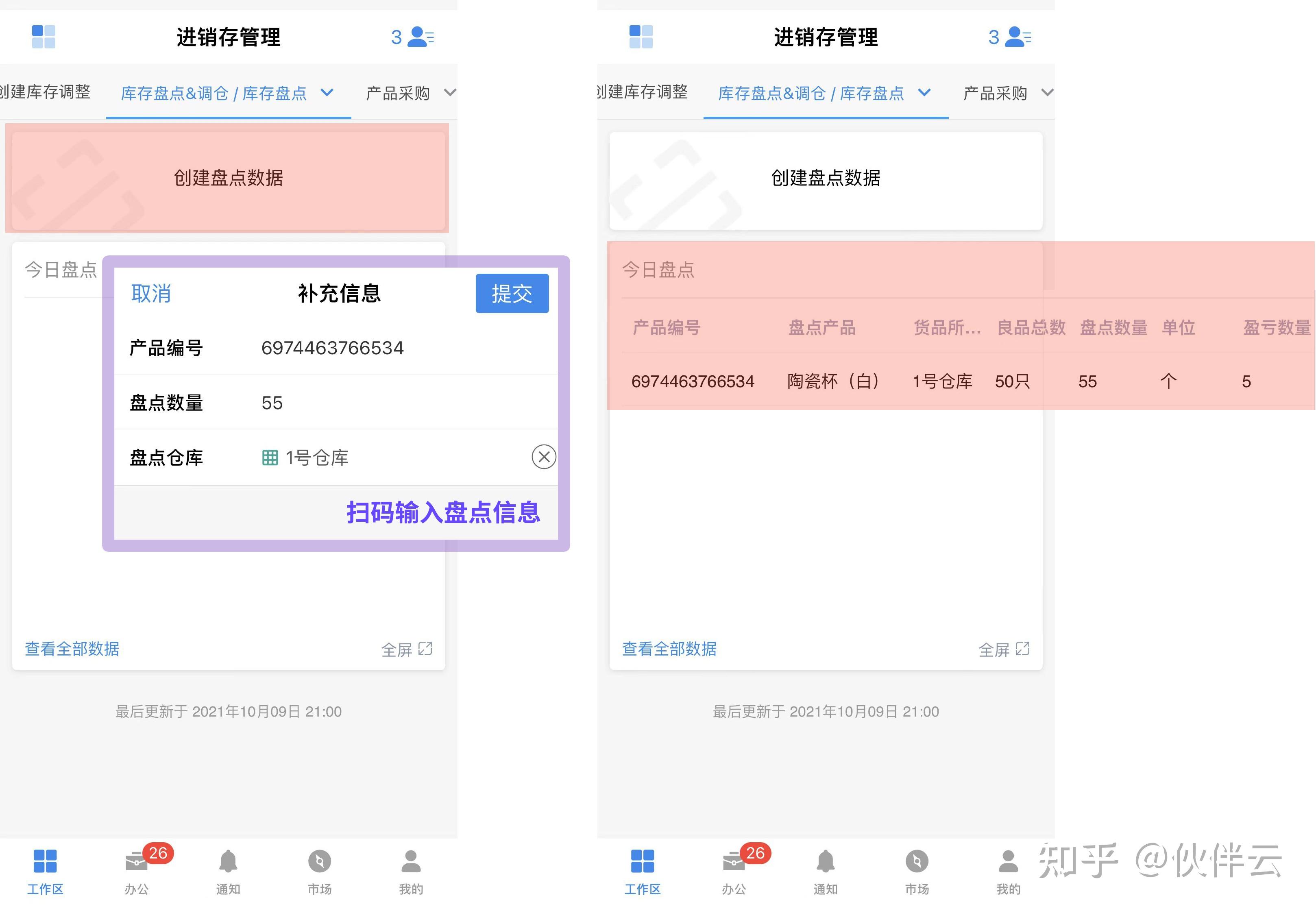 手机APP扫码仅需填入盘点仓库、数量等信息,系统就会依据获取的编码自动生成盘点数据。并与已有库存数据对比,自动计算盘点结果盈亏。