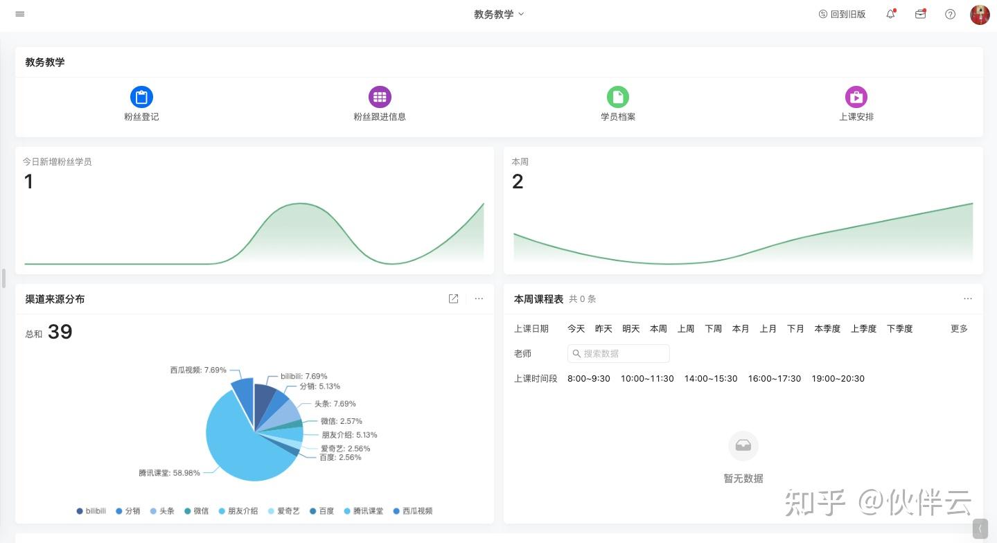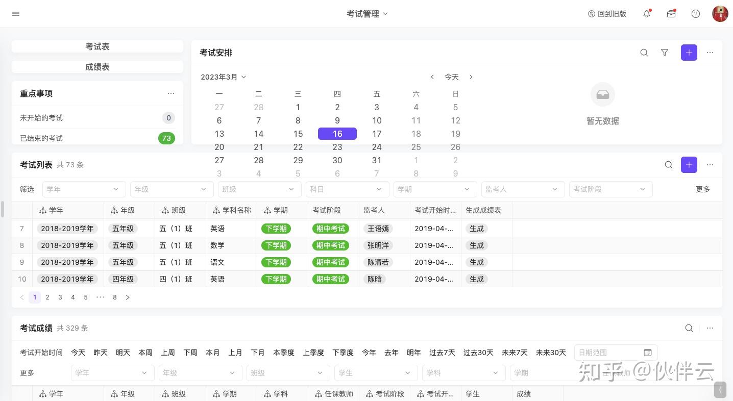 伙伴云教育管理系统,涵盖学生招生管理、教学管理、课程管理等,可掌握学生信息,多维度分析考试成绩,为教学安排提供指导,让教学有据可依!