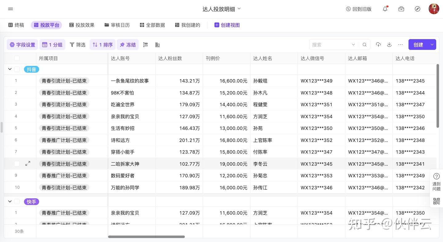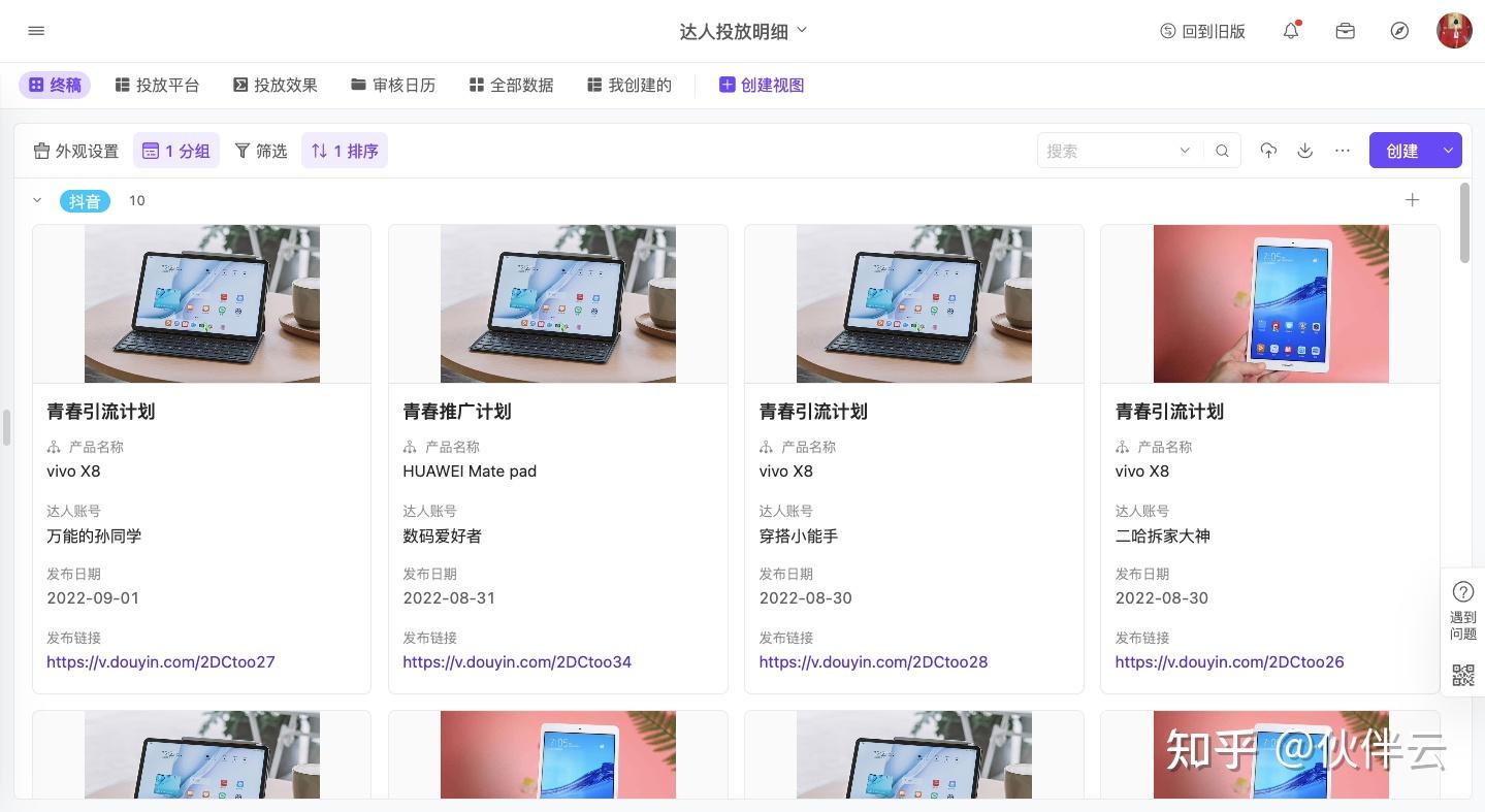 该模板适用于有视频投放需求的中小微企业,帮助运营记录与各个平台的达人合作情况及产品投放效果。