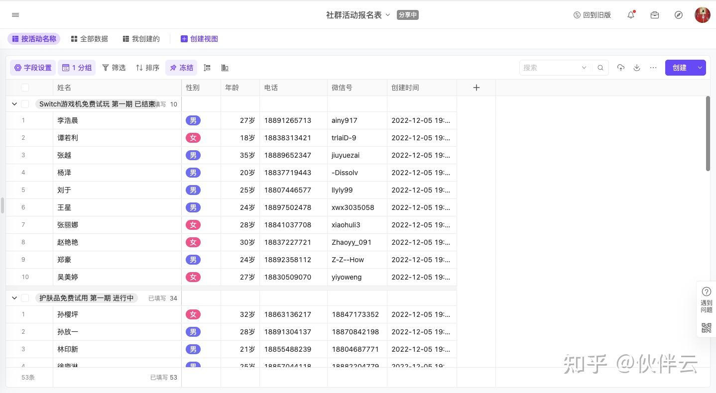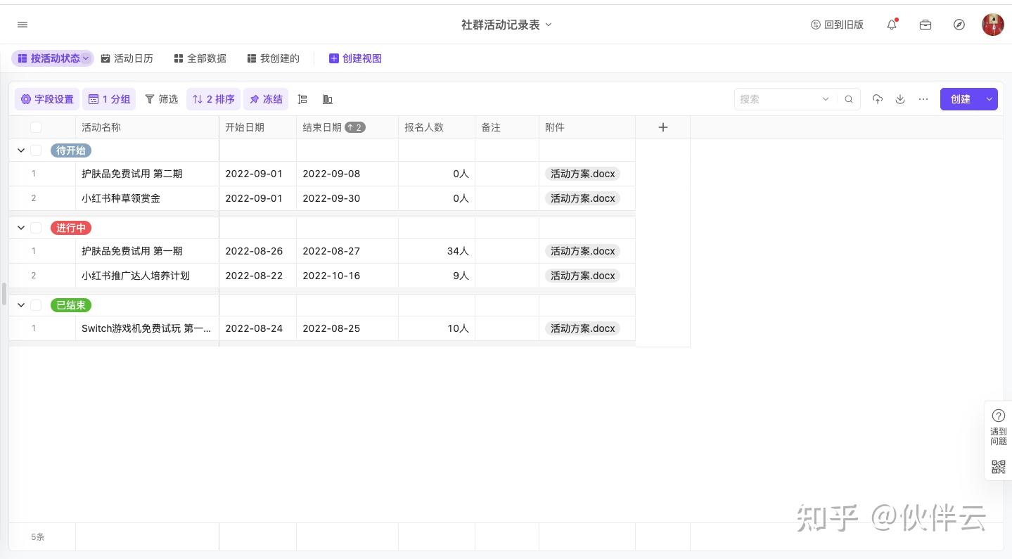 该模板适用于经常需要举办社群活动的团队,帮助记录每次活动信息、方案,同时可以分享活动报名表、高效收集用户的活动报名信息。