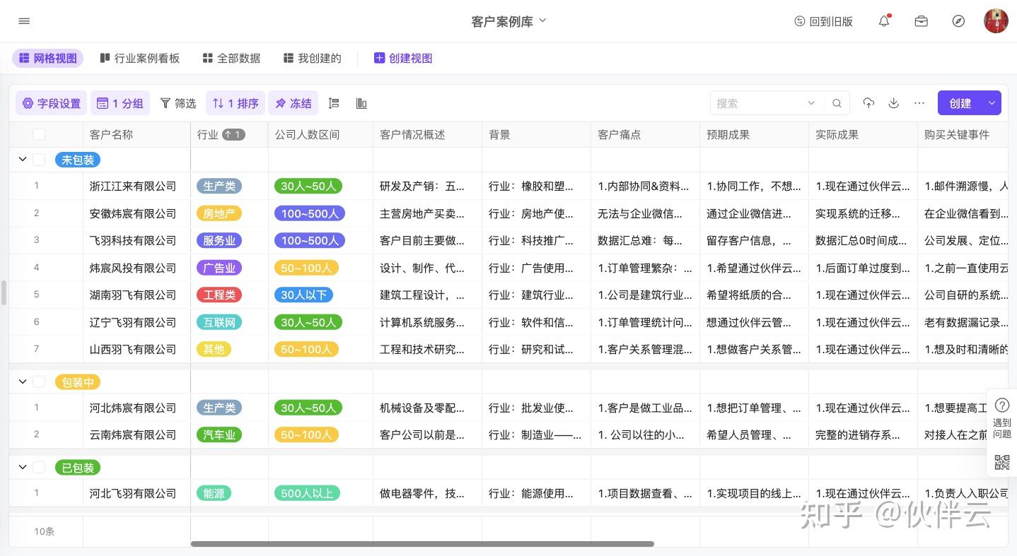 该模板适用于企业对已成交的优质客户案例进行收集管理,当市场部产生内容推文时,可以在案例库中寻找合适的案例文章。