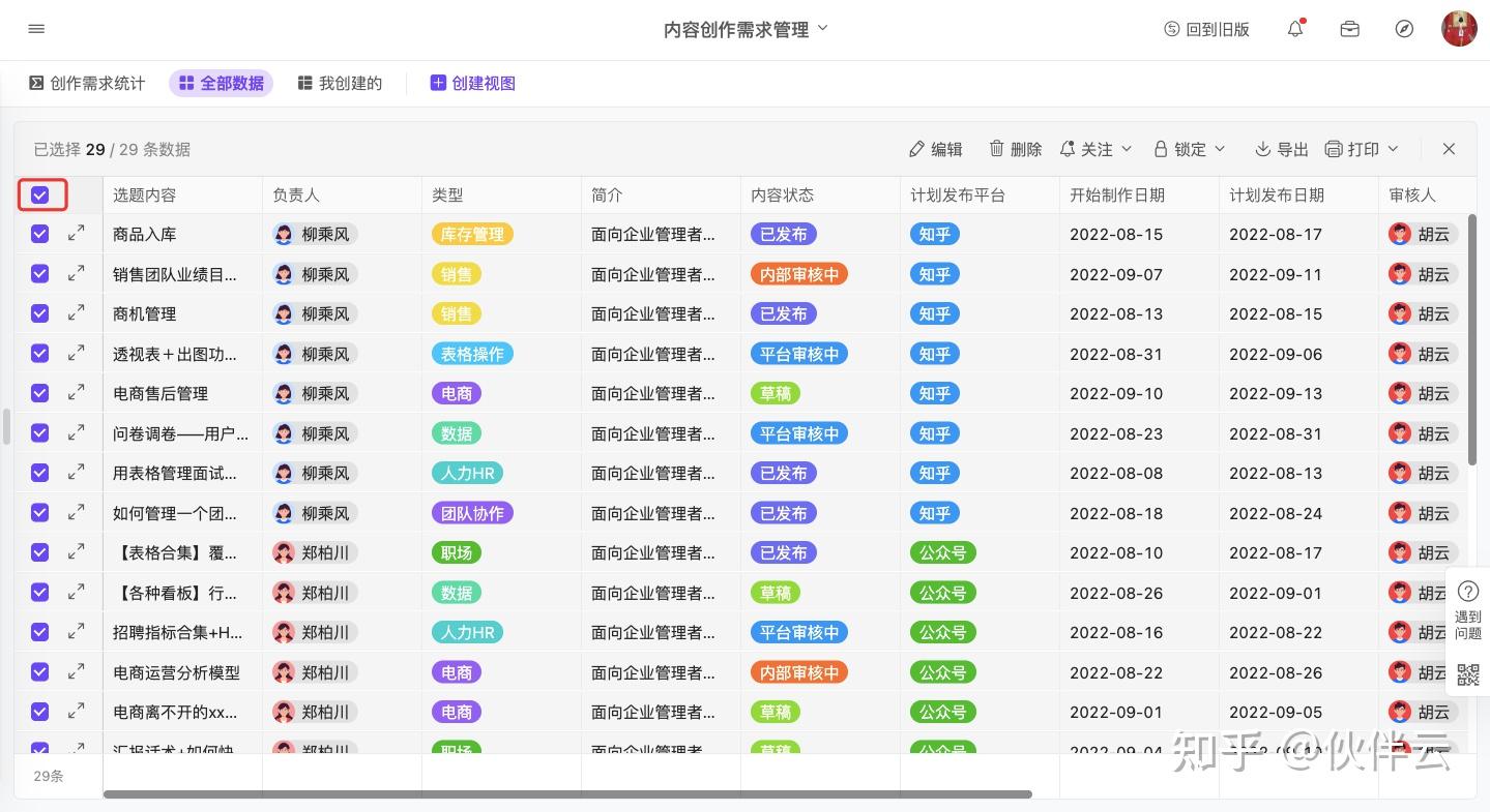 该模板适用于企业内容创作部门,实时在线统计内容创作工作量、工作进展等。