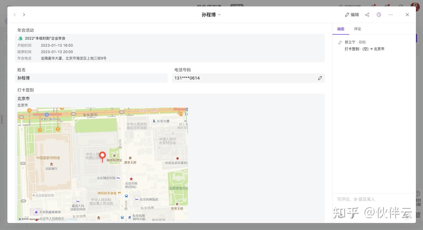模板里还自带了位置打卡签到,超清地图能精准定位到年会场地。