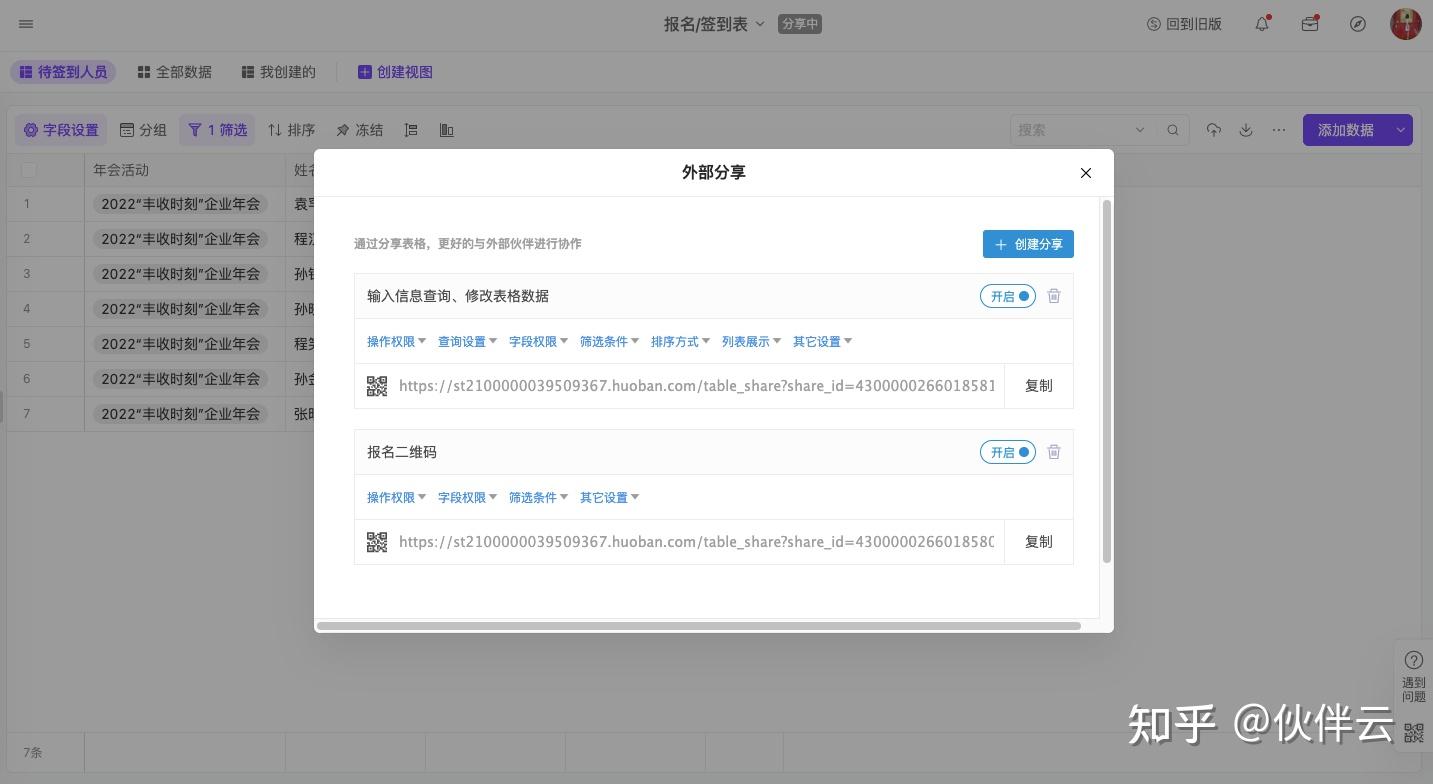 关于年会扫码签到表分享的设置,您可以查看 如何分享表格