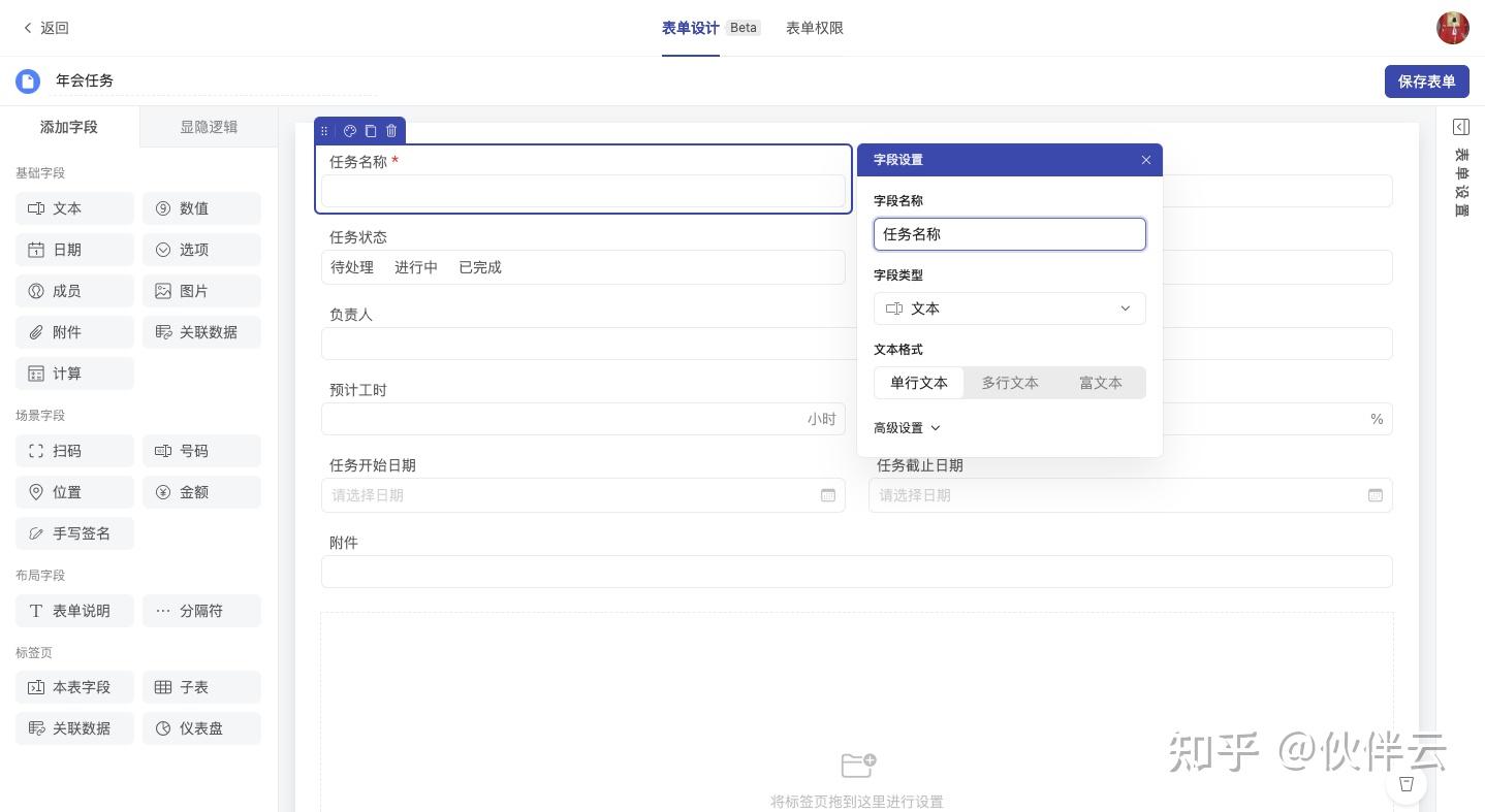 左侧是字段展示区,右侧是表单设计区,修改完成后,点击保存表单即可。