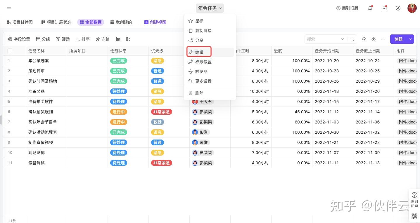 下面,我就以“年会项目管理模版”为例,给大家演示下如何修改模板吧。