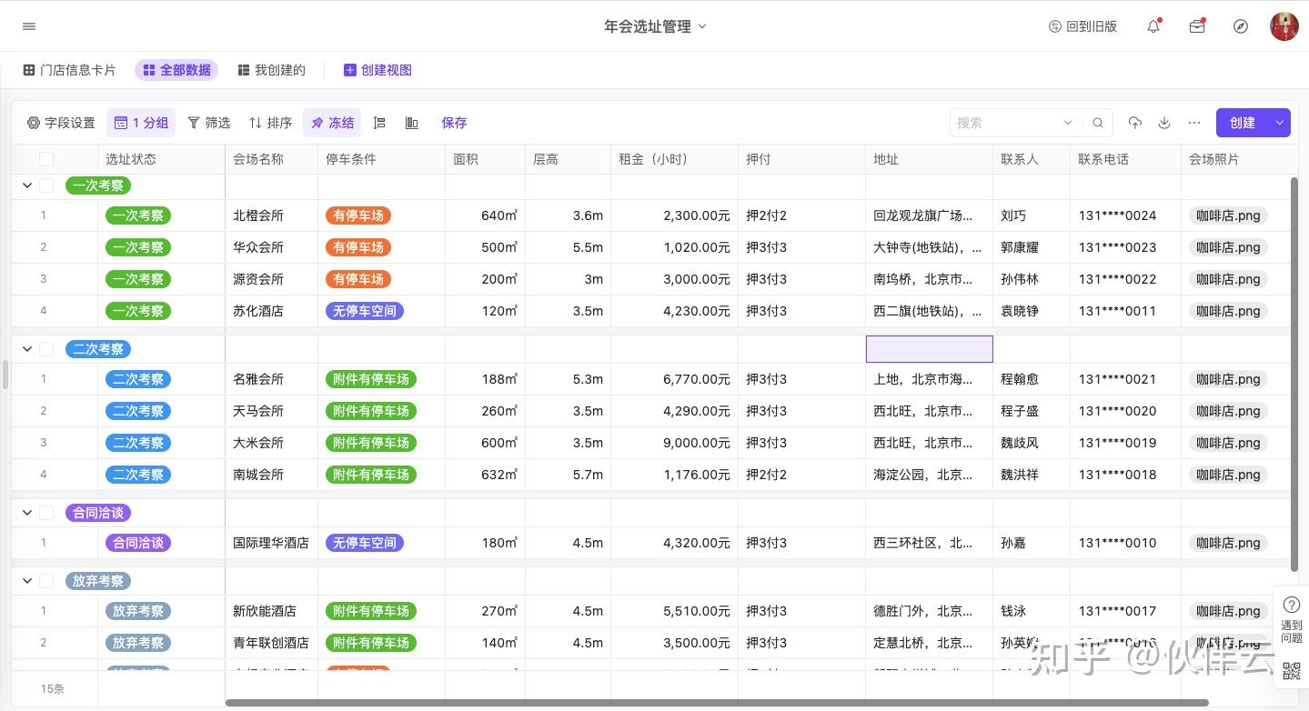 按照选址状态分组,还能一眼锁定比较重要的选址信息。
