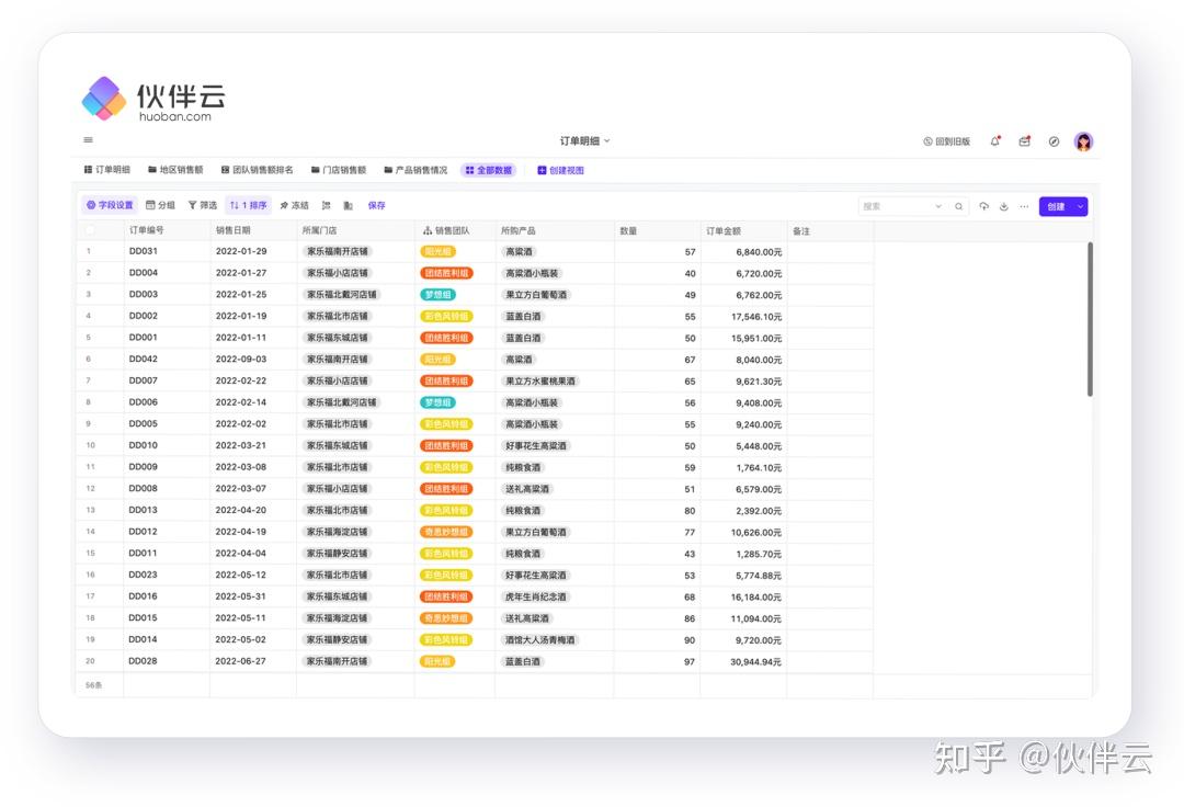 来,用伙伴云表格Pro 筛选、分组、透视下,直接给到他们想看的信息。