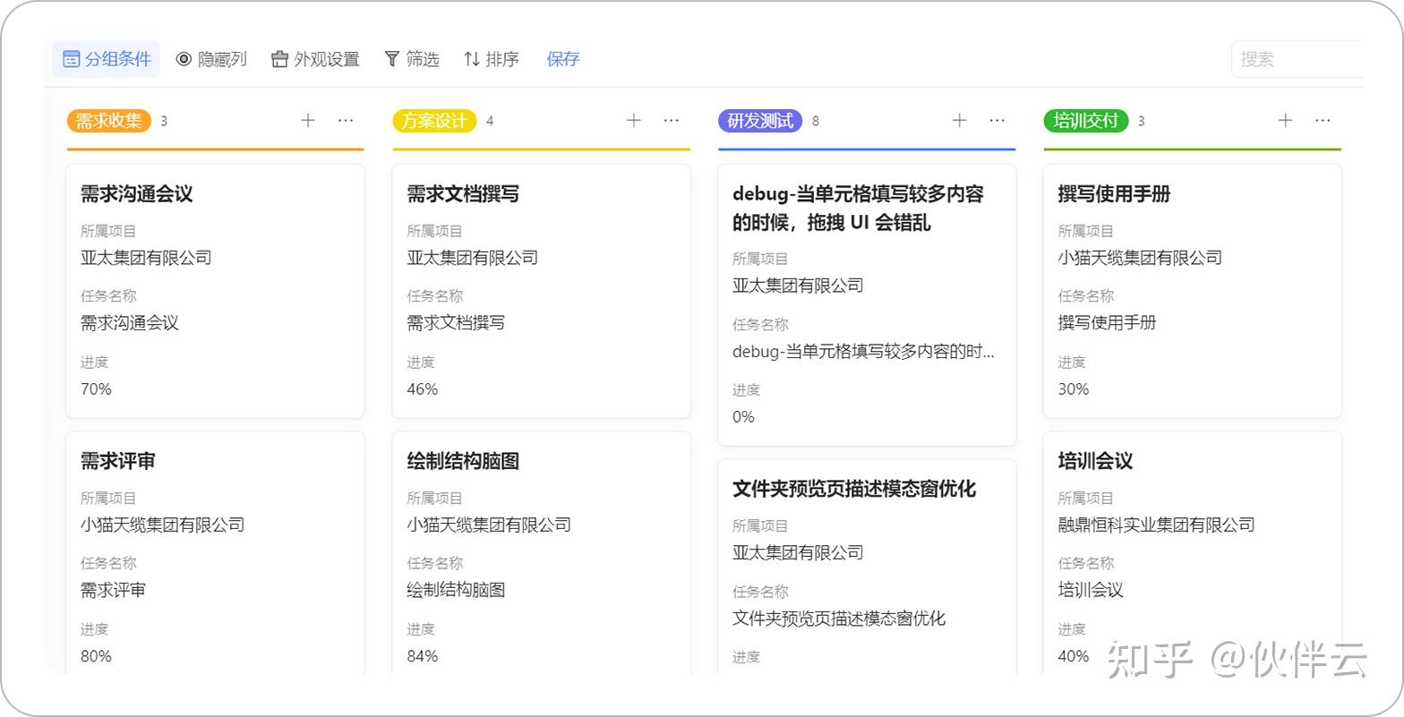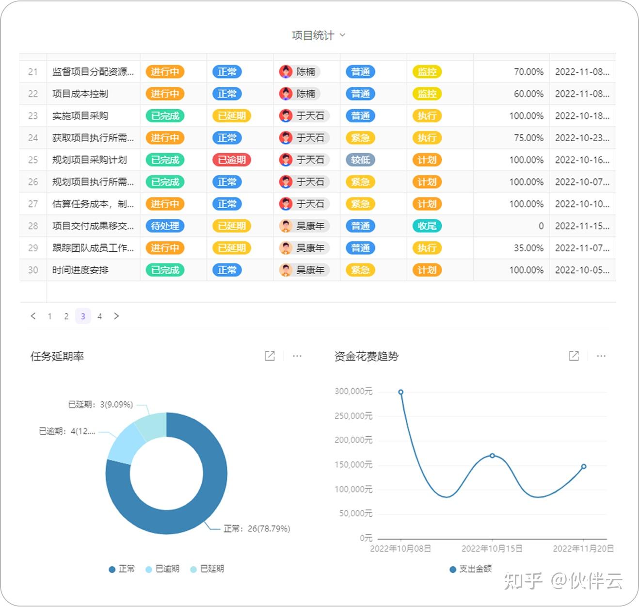 通过伙伴云查看这些不同的视图,不但可以了解任务和项目是否在如期推进,还可以迅速地针对过程中出现的问题纠正。