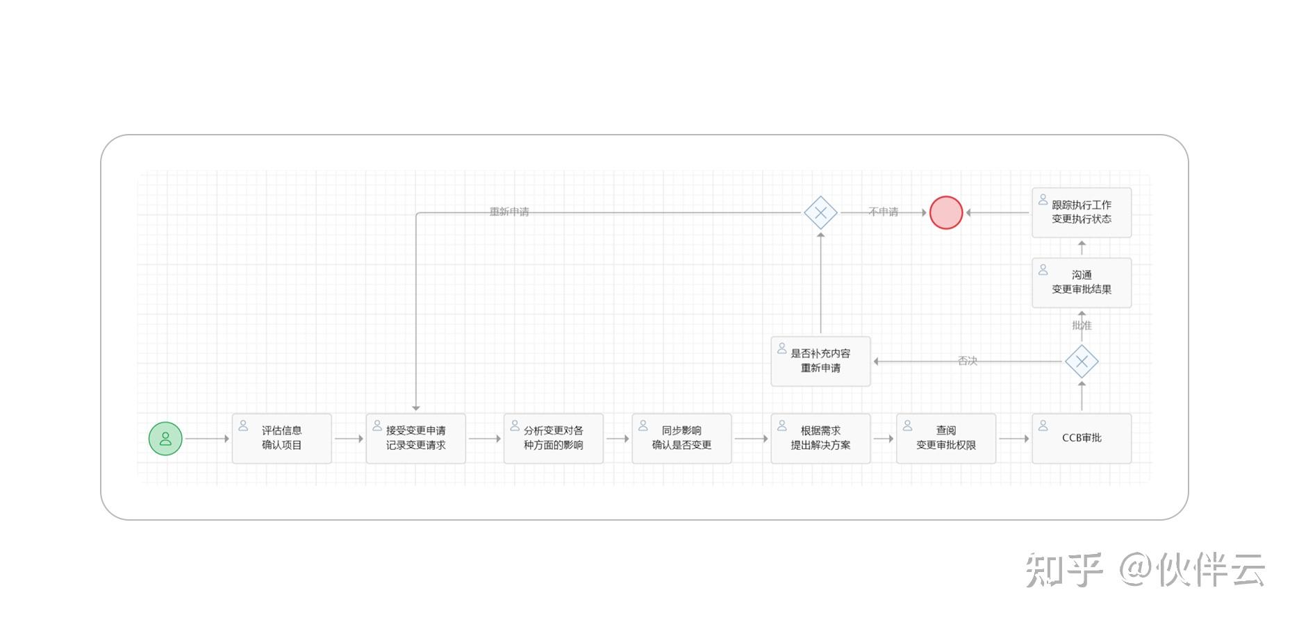针对项目变更问题,伙伴云提供完整的 BPM(业务流程管理)功能。当变更发起时,可以在 BPM 中用拖拽的方式管理变更,建立有效的审批流程。