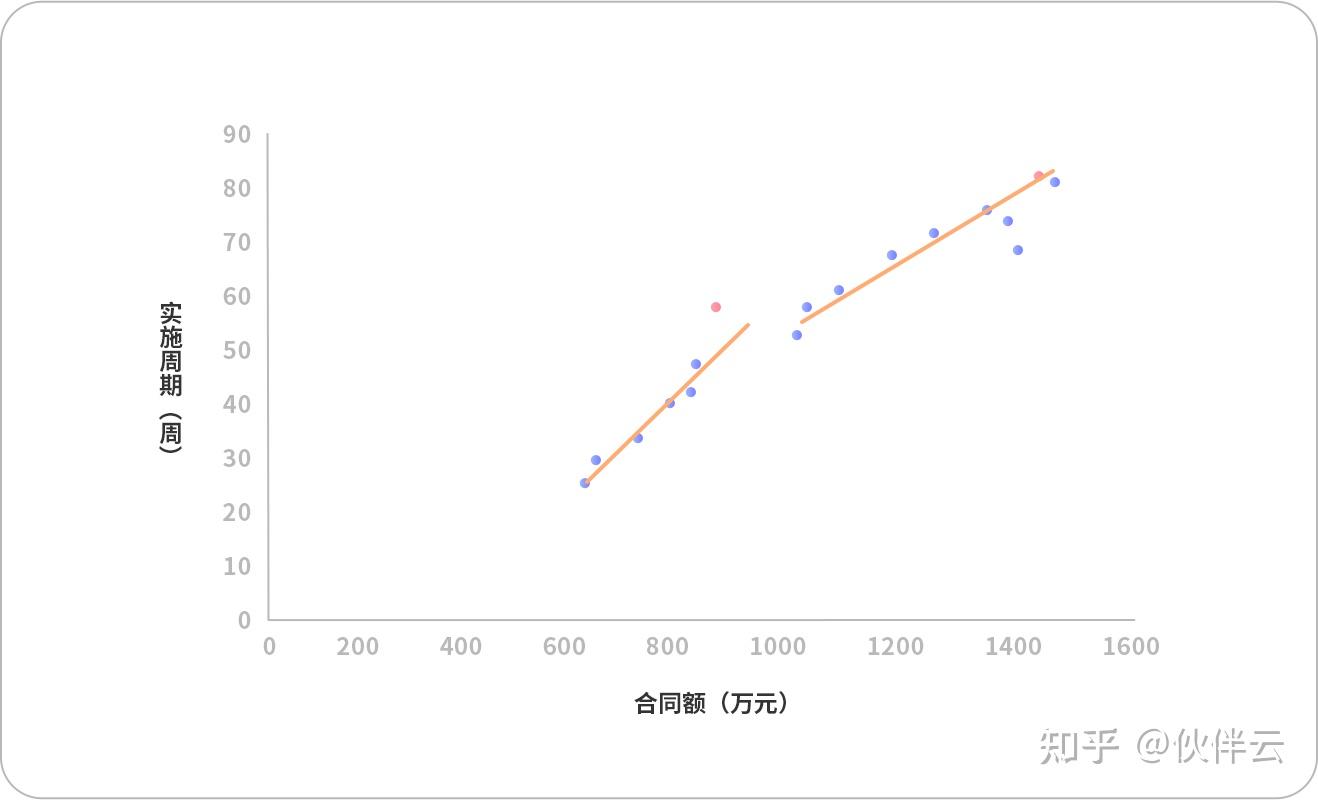 在项目过程中也会有其他数值,如金额和时间的数值。如果项目交付周期很长,但金额不高,在复盘时发现这个问题后,就可以选择不做这类项目,不如做项目金额高些,但项目周期短的。