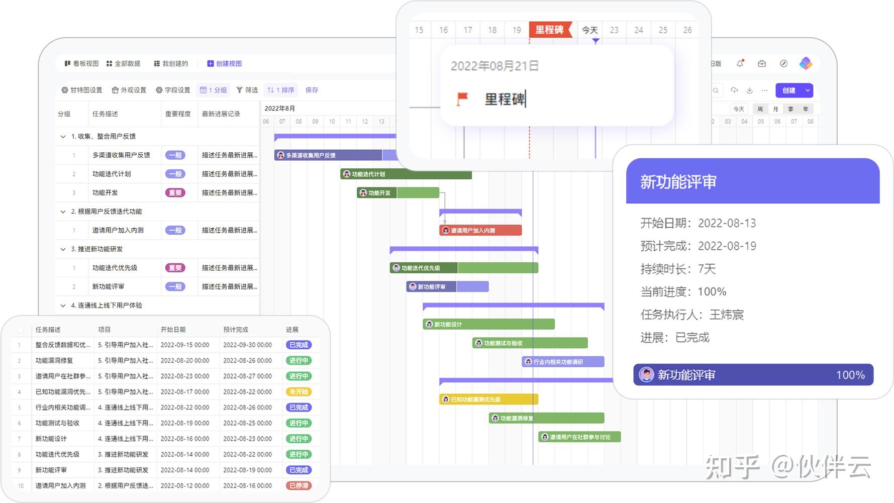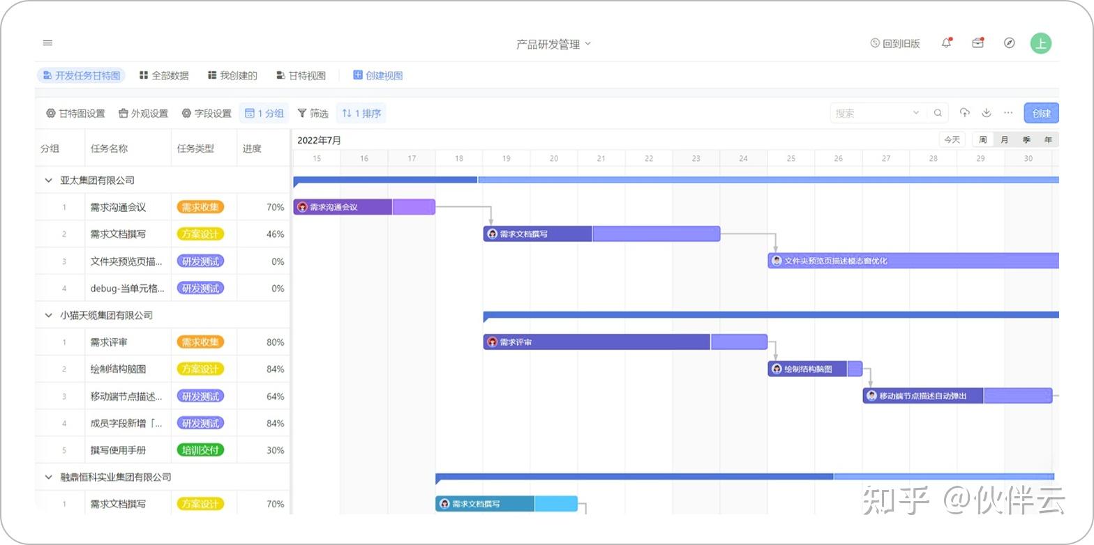 现在我们已经可以把数据放到云上,在管理项目时,可以用伙伴云甘特图这样的在线协同工具来完成项目的整体规划和管理,与“靠谱的团队”协同作战。