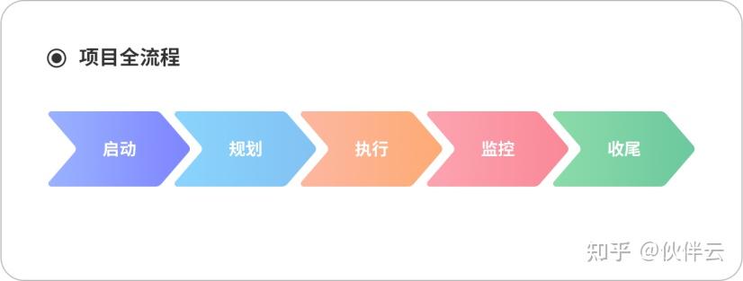 软件开发、装修工程、建桥或打战役都是一个个项目,项目全流程通常都分为这五个阶段——启动、规划、执行、监控、收尾。
