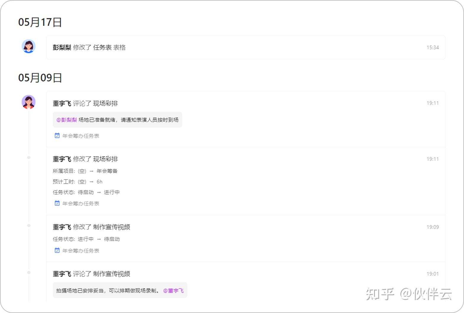 在项目过程中,伙伴云能把所有任务项目及时间管理发生的一切变化记录下来。