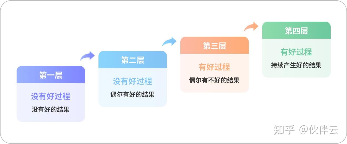 第四层:虽然持续有好过程不代表每次有好结果,但在不断进行 PDCA 循环复盘时,会逐渐过渡到第四层——既有好过程,且持续产生好结果。