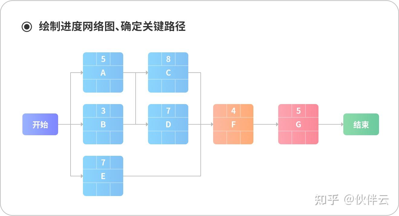 首先要规划进度的网络图,确定里面的关键路径。关键路径决定了在项目排期和布局时,需要哪些部门沟通和协调,每个参与者都要从其专业角度指导拆解项目任务的合理方式。