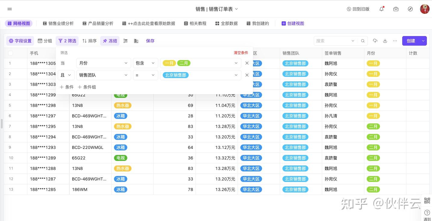 设置筛选条件为:当月份包含(一月、二月)且销售团队=北京销售部。